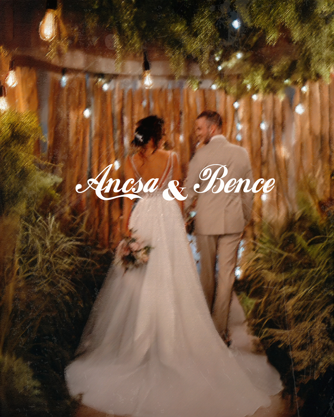 Nem egy klasszikus esküvői nap, hanem egy igazi élmény a kecskeméti Bukovszki Birtok pajtájában. Ancsa és Bence esküvőjén a fesztiválhangulatú elektronikus zene, a felszabadult nevetések és az egymás iránti rajongás vitték előre a történetet. A kreatív nyitótánc és a pörgős–érzékeny jelenetek váltakozása egy olyan zenei videoklip hangulatot ad a filmnek, ami egyszerre laza, érzelmes és nagyon mai.